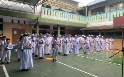 Membiasakan siswa siswi Mi Nurul Huda untuk pembiasan disiplin